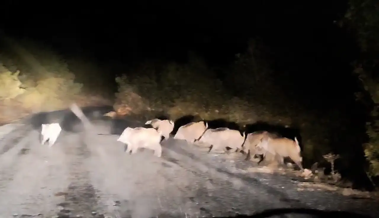 Tatvan ilçesine bağlı Hanelmalı köyünde seyir halinde ilerleyen bir aracın önüne domuz sürüsü çıktı. Köy yolunda karşıya geçmeye çalışan domuz sürüsü aracın gelişiyle bir süre bekledi. Domuzlar bir süre sonra ormanlık alana giderek gözden kaybolurken, o anlar cep telefonu kamerasına yansıdı.