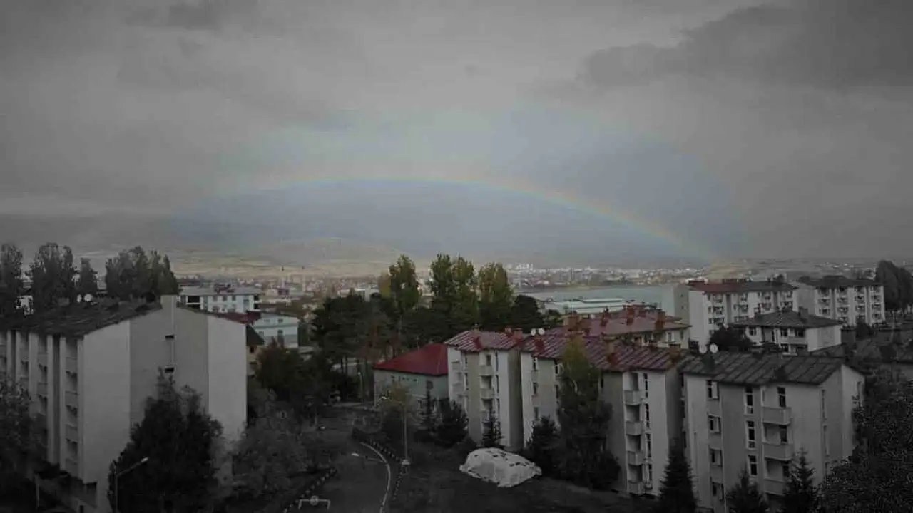 Bitlis’in Tatvan ilçesinde yağmurun ardından ortaya çıkan gökkuşağı, ilçe semalarında etkileyici bir manzara oluşturdu. Kısa süreli yağışın ardından beliren gökkuşağının bir ucunun Van Gölü üzerinde olduğu görüldü. Tatvan’ın doğal güzellikleriyle bütünleşen bu renkli manzara, günün en dikkat çekici görüntülerinden biri oldu.