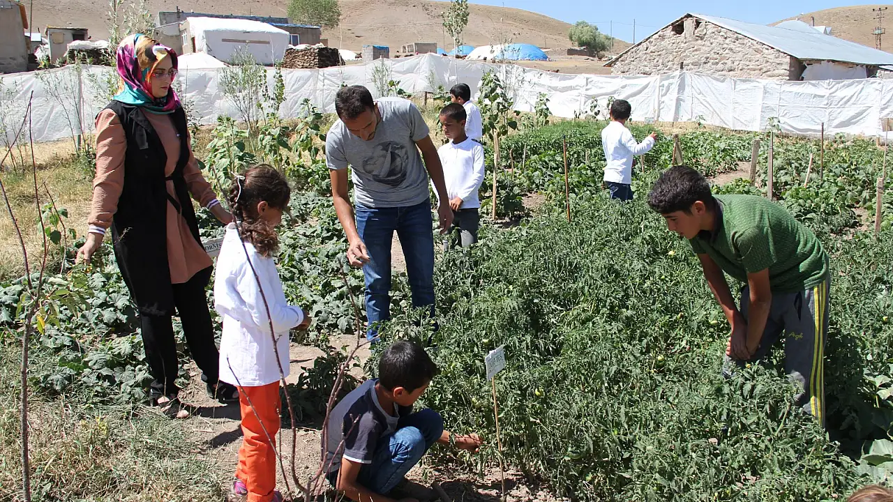 Ağrı'nın Tutak ilçesine bağlı Dağlıca Köyünde 9 yıldır görev yapan öğretmen Eren Oruç ve eşi Altun Oruç, Milli Eğitim Bakanlığınca başlatılan 'Telafide bende varım' eğitimleri kapsamında okul bahçesine kendi imkanları ile kurdukları bostanda, öğrencilere