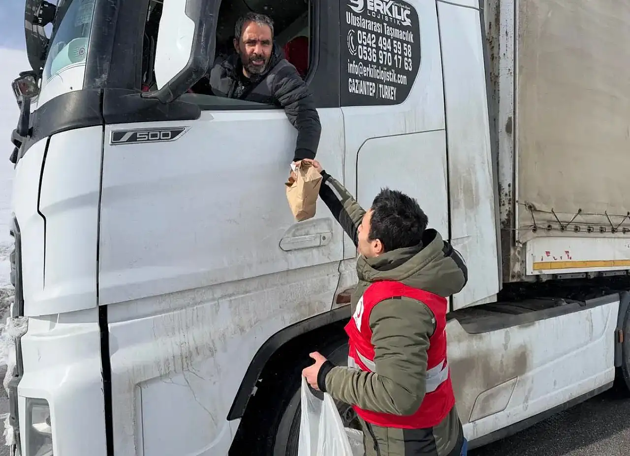 Kızılay ekipleri, Tendürek Geçidi'nde bekleyen vatandaşlara kumanya desteği sağladı.
