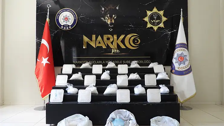 Van'da narkotik dedektör köpeği Antrax'ın da katılımıyla yapılan aramada, tezeklerin arasına gizlenmiş vaziyette 41 kilo 300 gram metamfetamin ele geçirildi.