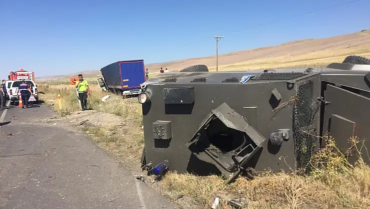 Ağrı İl Emniyet Müdürlüğüne bağlı zırhlı polis aracı Erzurum'un Horasan İlçesi yakınlarında kaza yaptı.