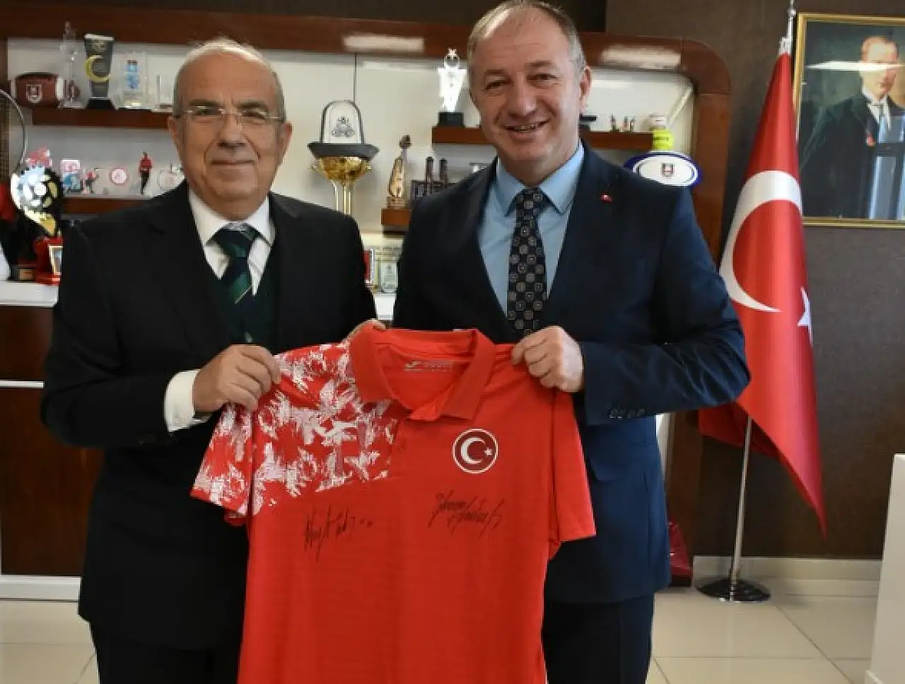 Gerçekleşen ziyarette Federasyon Başkanı Kocakaya, Türk atıcılığının gurur isimlerinden Yusuf Dikeç’in imzaladığı millî formayı İl Müdürüne hediye etti. İl Müdürü ise Kocakaya’ya Erzurum temalı bir forma takdim ederek ziyaretten duyulan memnuniyeti ifade etti.