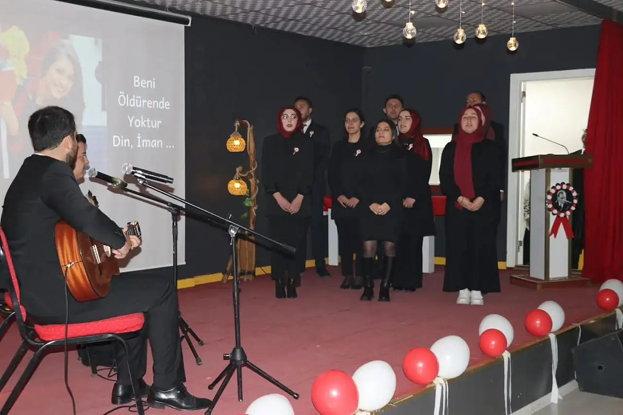aşkan Vekili İsmail Tekeş, ilçe kurum amirleri ve öğretmenler, Yatılı Bölge Ortaokulu tarafından Öğretmenevi Konferans Salonu’nda düzenlenen “24 Kasım Öğretmenler Günü” programına katıldı. Program, saygı duruşu ve İstiklal Marşı’nın okunmasıyla başladı. Ardından günün anlam ve önemine yönelik konuşmalar yapıldı. Öğrenciler tarafından çeşitli şiirler okundu, öğretmenler tarafından hazırlanan türkü dinletisi sunuldu.