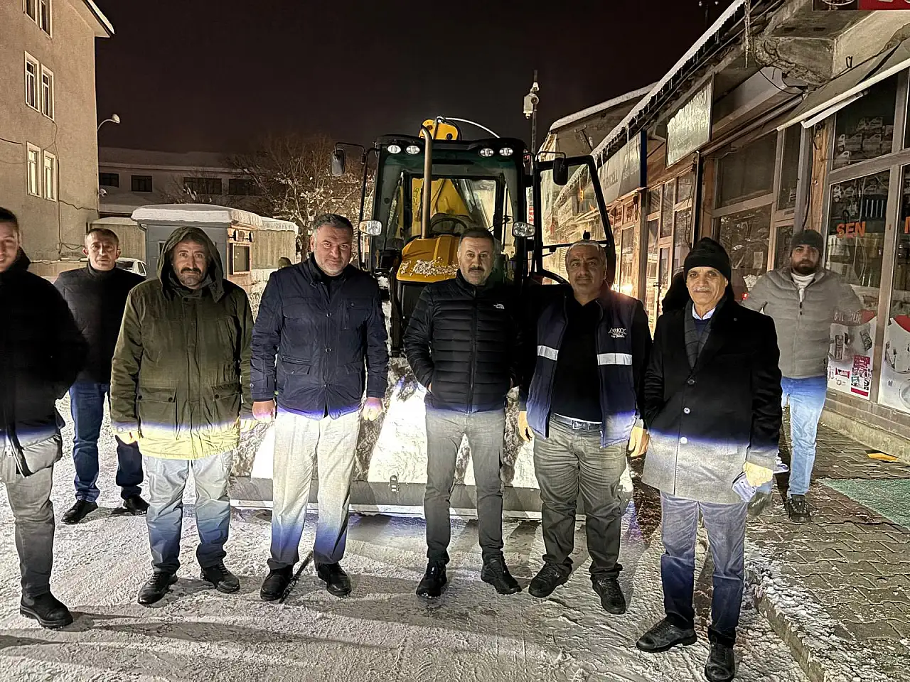 Tutak'ta belediye ekipleri, yoğun kar yağışına rağmen gündüz başlayan çalışmaları gece boyunca sürdürdü.
