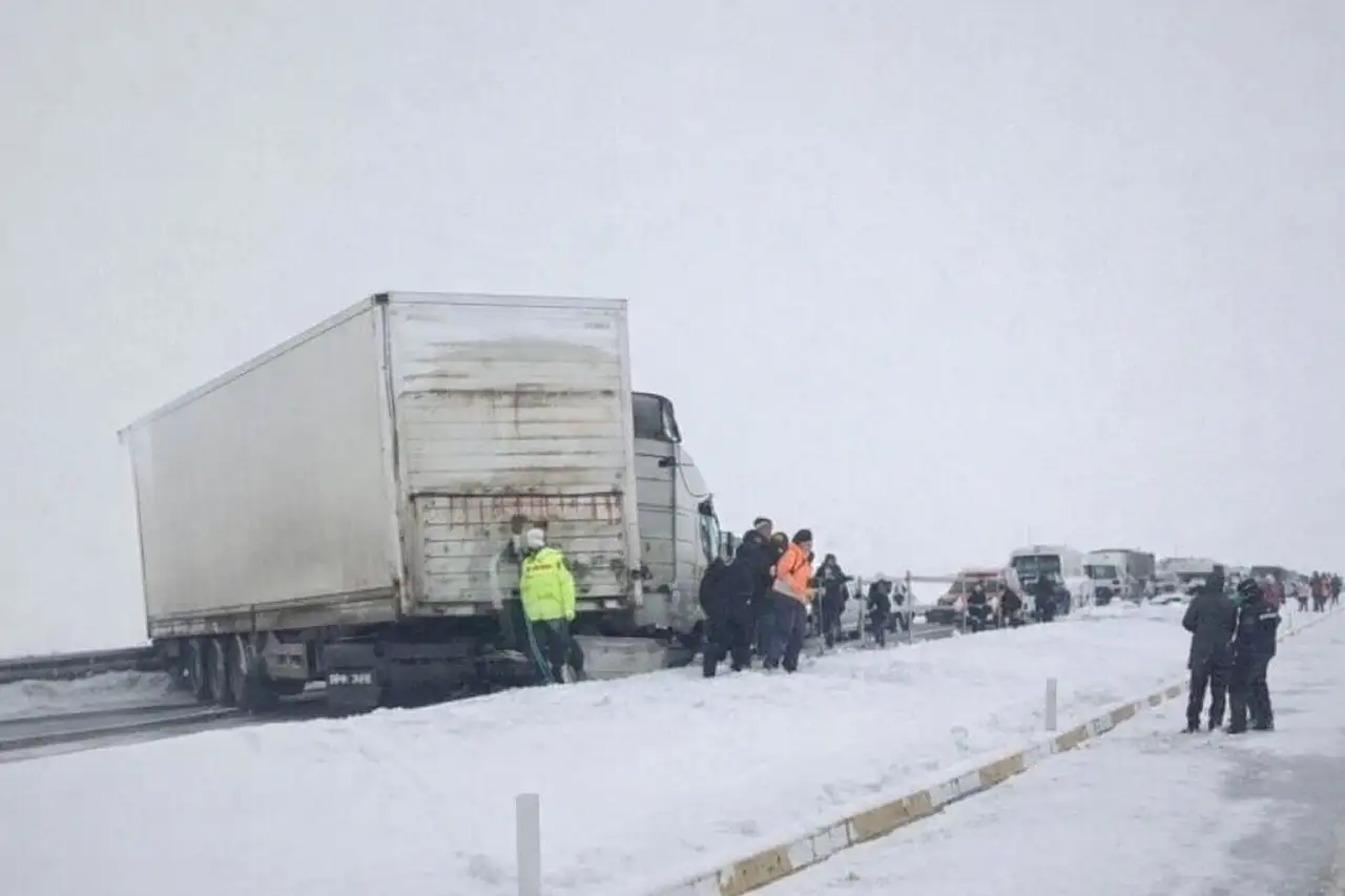 Ağrı'da buzlanma TIR kazasına yol açtı, yol geçici olarak kapandı.
