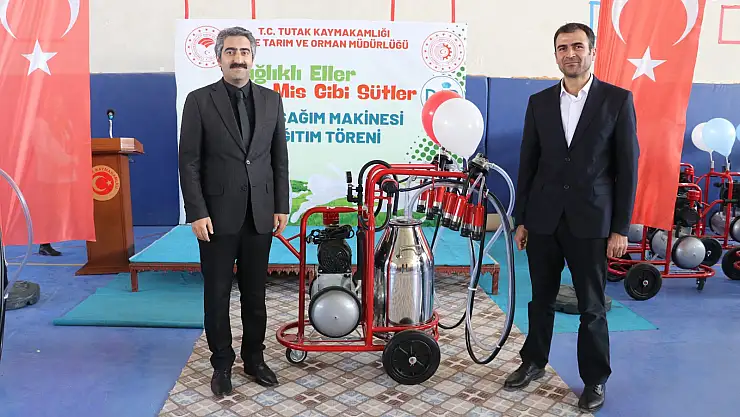 Tutak İlçe Tarım ve Orman Müdürlüğünün yürüttüğü, DAP Bölge Kalkınma İdaresi Başk. finanse ettiği yüzde 70 hibeli “Sağlıklı Eller Mis Gibi Sütler Projesi” Tutaklı yetiştiricilere 60 adet süt sağım makinesi törenle dağıtıldı.