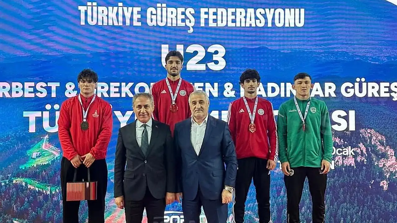 Ağrı İbrahim Çeçen Üniversitesi Spor Bilimleri Fakültesi öğrencisi Mesut Söğüt, 26–31 Ocak 2026 tarihleri arasında Trabzon’da düzenlenen U23 Türkiye Güreş Şampiyonası'nda önemli bir başarı elde etti. Söğüt, Grekoromen stil müsabakalarında Türkiye üçüncüsü olarak bronz madalya kazandı. Türkiye’nin farklı illerinden çok sayıda sporcunun katılımıyla gerçekleştirilen şampiyonada, genç güreşçiler dereceye girebilmek için mücadele etti. Turnuva boyunca rakipleriyle yaptığı karşılaşmalarda istikrarlı bir performans sergileyen Mesut Söğüt, sıkletinde ilk üç sporcu arasına girerek organizasyonu üçüncülükle tamamladı. Ağrı İbrahim Çeçen Üniversitesi Spor Bilimleri Fakültesi bünyesinde eğitim hayatını sürdüren Söğüt’ün elde ettiği bu derece, üniversite camiasında memnuniyetle karşılandı. Başarılı sporcu, Trabzon’da düzenlenen şampiyonada kazandığı madalya ile hem üniversitesini hem de Ağrı’yı temsil etti.