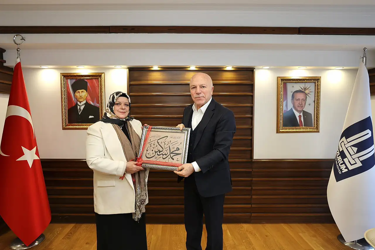 UKTEDER Başkanı Handan Yenigün ve heyeti, Erzurum Büyükşehir Belediyesini ziyaret ederek gençlere yönelik iş birliği konularını görüştü.