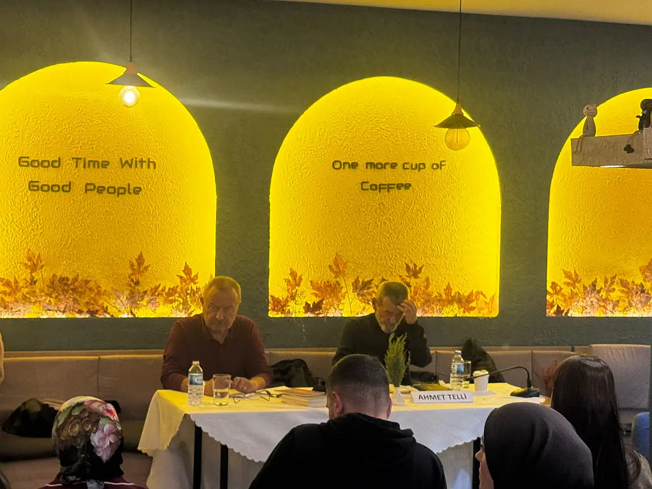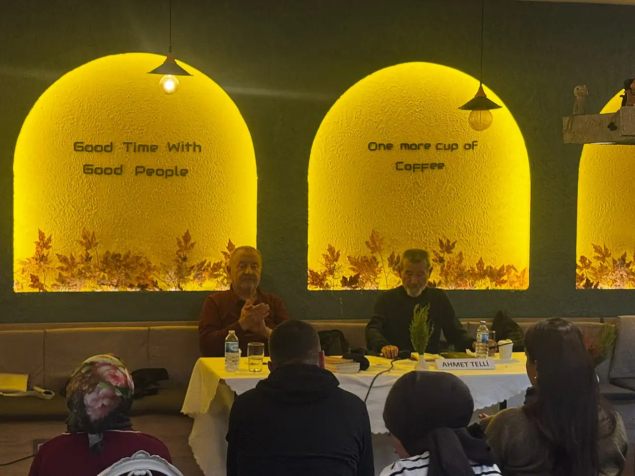 Doğubayazıt Kitap Kulübü, 'Edebiyat Günleri' etkinliğinde usta yazarlar Ahmet Telli ve Şükrü Erbaş'ı Ru Sahaf Kafe'de edebiyatseverlerle buluşturdu.