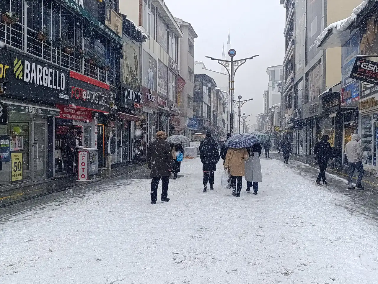 Şehir merkezinin en işlek noktalarından biri olan Cumhuriyet Caddesi’nde kar yağışı nedeniyle yaya ve araç trafiğinde yavaşlama yaşandı. Karla kaplanan kaldırımlar ve yollar, sabah saatlerinde ilerlemeyi güçleştirirken, vatandaşlar yağışın etkili olduğu anlarda yürümekte zorlandı.