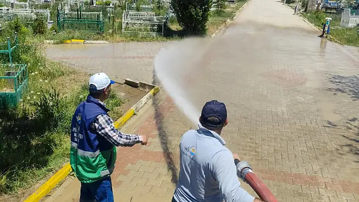 Vatandaşların daha sağlıklı bir bayram geçirebilmeleri için çalışmalarını sürdüren Büyükşehir Belediyesi Çevre Koruma ve Kontrol Daire Başkanlığına bağlı ekipler, geceli gündüzlü cadde yıkama çalışması yaparken, Vanlıların bayram sürecinde ziyaret edeceği mekânlar, ibadethaneler ve mezarlıklarda da temizlik çalışması yürütüyor.