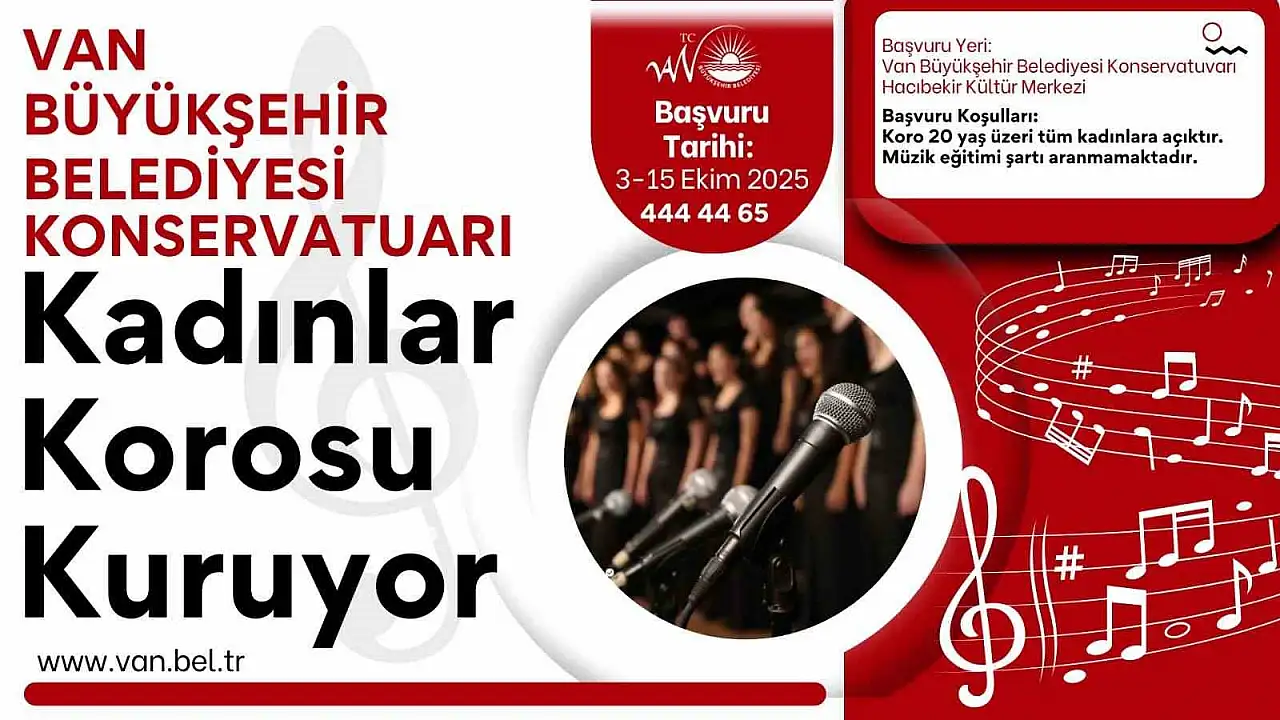 Van Büyükşehir Belediyesinden yapılan açıklamada, kadınların sesi, sözü ve duygularını sanat yoluyla ifade etmelerine imkan sağlayacak olan Van Kadınlar Korosunun ev kadınları ve çalışan kadınların katılımıyla oluşturulacağı belirtildi. Açıklamada, "Koroya katılacak kadınlar, Van Büyükşehir Belediyesi Konservatuvarı bünyesinde görev yapan uzman eğitmenler eşliğinde profesyonel müzik eğitimi alacak, konser ve etkinliklerde sahne alarak Van’ın sanat yaşamına değer katacak. 2023 yılında Van Valisi ve Van Büyükşehir Belediye Başkan Vekili Ozan Balcı’nın talimatlarıyla kurulan Van Büyükşehir Belediyesi Konservatuvarı; müzik, resim, halk oyunları ve tiyatro branşlarında başlattığı eğitim faaliyetlerini çeşitlendirerek büyütmeye devam ediyor. 2024 yılı Şubat ayında kapılarını açan konservatuvar, çocuk korosunun ardından şimdi de kadınların sanatla daha güçlü bir şekilde buluşacağı Van Kadınlar Korosu projesiyle fark oluşturmayı hedefliyor. Yeni kurulacak kadın korosuna katılım için 3 Ekim Cuma günü başlayacak başvurular, 15 Ekim 2025 tarihine kadar Van Büyükşehir Belediyesi Konservatuvarı, Hacıbekir Kültür Merkezinde şahsen yapılabilecek. Ücretsiz olarak sunulan bu programa 20 yaş ve üzeri tüm kadınlar, herhangi bir müzik eğitimi şartı aranmaksızın başvuruda bulunabilecek" denildi.
