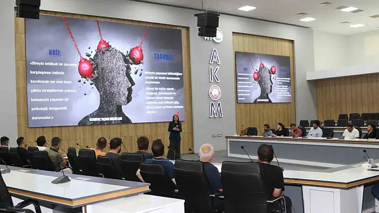 Afet İşleri Daire Başkanlığı tarafından Fidanlık Parkı yerleşkesinde bulunan AKOM binasında verilen eğitimde, Psikolog Nursel Avcı Erdal, katılımcılara psikolojik ilk yardımın kavramları, temel ilkeleri ve sahaya yönelik uygulama yöntemlerini anlattı. Afet bilincinin geliştirilmesi, toplumsal farkındalığın artırılması ve afet sonrası psikolojik dayanıklılığın güçlendirilmesi amacıyla düzenlenen egitim, soru-cevap bölümüyle tamamlandı.
