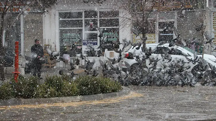 Kar yağışıyla birlikte çatılarda toplanan binlerce kuş, İzci'nin parka serptiği buğdayın ardından alana kondu. Uçuşan güvercinler, gökyüzünde adeta bir dans sergileyerek eşsiz bir manzara oluşturdu.