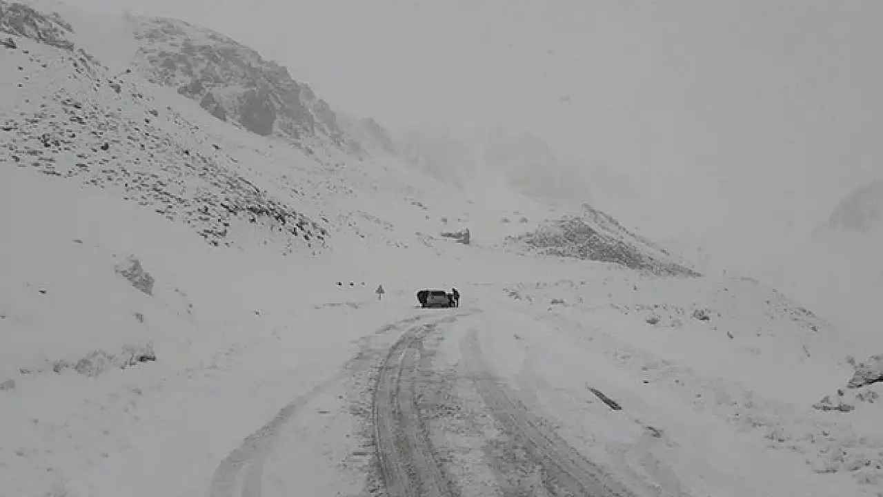 Doğu Anadolu Bölgesini dünden buya etkisi altına alan kar yağışı ve fırtına, Van’ın yüksek kesimlerinde trafiği olumsuz önde etkiliyor. Van-Bahçesaray karayolu üzerinde bulunan 2973 rakımlı Karabet Geçidi’nde etili olan kar yağışının yanı sıra fırtına ve tipiden dolayı sürücüler zor anlar yaşıyor. Zincirsiz yola çıkan bazı sürücüler geri dönerken, zincir takan diğer sürücüler ise yoluna devam etti. Karayolları 11. Bölge Müdürlüğü 111. Şube Şefliğine bağlı Görentaş Şantiye şefliği ekipleri, bölgede çalışmalarını sürdürüyor.