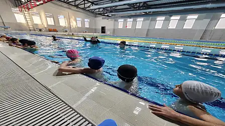 Yüzme Antrenörü Meryem Karasu ise "İlçemizde yeni açılan havuzda 6-14 yaş arasındaki erkek ve kız öğrencilerimize yüzmeyi öğretiyoruz. Kurslarımız ücretsizdir. İlçemizdeki tüm çocuklarımızı buraya bekleriz." diye konuştu.