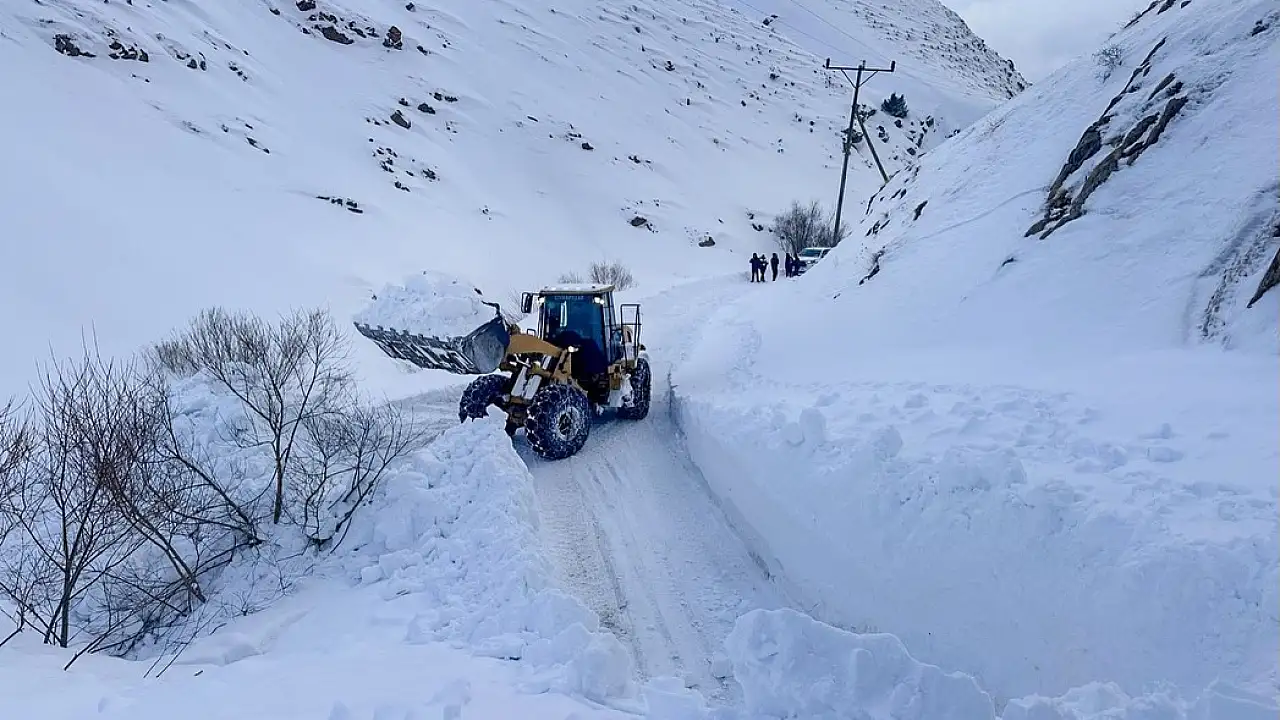 Van'ın İran sınırındaki Sualtı Mahallesi'nde kar ve çığ nedeniyle kapanan yol, ekiplerin 5 saatlik çalışmasıyla açıldı.
