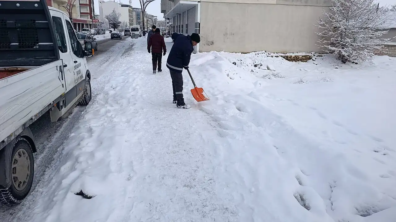 Van Erciş'te Kaldırım Temizleme Çalışmaları Aralıksız Sürüyor