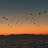 Van Gölü sahillerinde gündüz saatlerinde yiyecek arayarak karınlarını doyuran kuşlar, akşam saatlerinde farklı alanlara göç ederken kartpostallık görüntülerin ortaya çıkmasına neden oluyor.