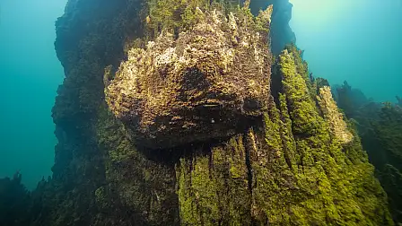 Bitlis'in Ahlat ilçesinde Sahil Güvenlik Komutanlığı Dalış Emniyet Güvenlik ve Arama Kurtarma (DEGAK) ekibi tarafından tespit edilen yeni mikrobiyalit (Dikit) kolonisi, su altı görüntü yönetmeni Tahsin Ceylan ve ekibi tarafından görüntülendi