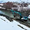 Van'ın Gürpınar ilçesi Akpınar Mahallesi'nden geçen derede DSİ 17. Bölge Müdürlüğü Van tarafından yürütülen dere ıslahı çalışmaları devam ediyor.