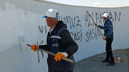 Van Büyükşehir Belediyesi, şehirdeki yazılı duvarları temizleyerek hem estetik bir çevre oluşturuyor hem de farkındalık yaratıyor.