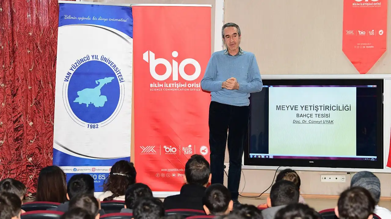 Van Yüzüncü Yıl Üniversitesi, Tarım Haftası kapsamında Tuşba Tarım ve Mesleki Teknik Anadolu Lisesi'nde 'Bilim İletişimi – Meyve Yetiştiriciliği' temalı bir etkinlik düzenledi.
