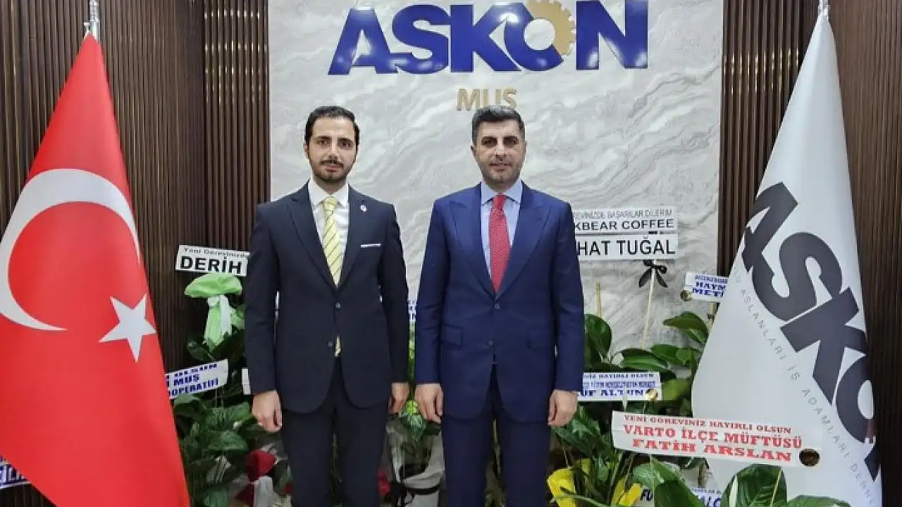 Varto İlçe Müftüsü Fatih Arslan ve beraberindeki heyet, Diyanet Gençlik Merkezi projesi için ASKON Muş Başkanı Dr. Serkan Karadağ'ı ziyaret etti.