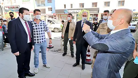 Ağrı’da cadde ve sokakları dolaşarak Covid-19 denetimlerine katılan Ağrı Valisi Dr. Osman Varol ve Ağrı Belediye Başkanı Savcı Sayan, bir yandan da vatandaşlarla sohbet etmek imkanı buldular. Esnafları ziyaret eden protokol üyelerini vatandaşlar sosyal mesafe kurallarına uyarak selamlarken, Vali Varol ve beraberindekiler vatandaşlara uyulması gereken kurallar konusunda sürekli uyarılarda bulundular.