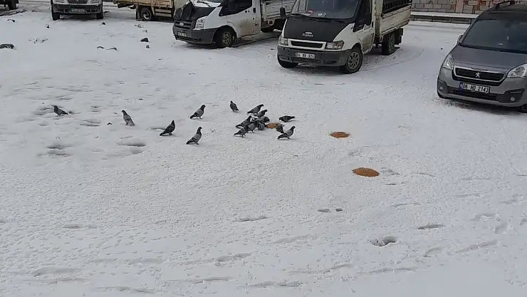 Ağrı'da kış aylarının gelmesi ile sokak hayvanları ve kuşlar yem bulmakta zorluk çekerken, Ağrılılar kapılarının önlerine koydukları yiyeceklerle hayvanları besliyorlar.