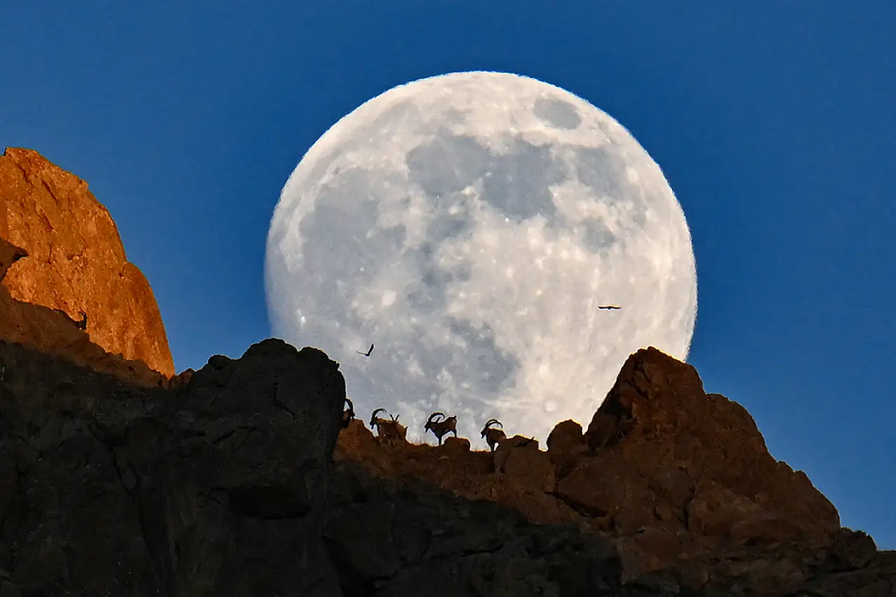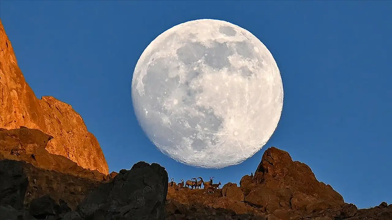 Yaban Keçileri Pagan Dağı'ndaki Güvenli Yaşamlarına Dolunay Eşliğinde Devam Ediyor