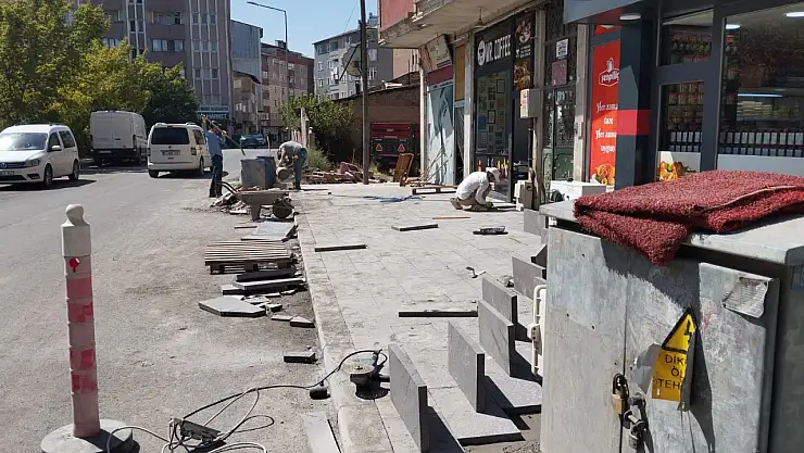 Ağrı'da Yavuz Mahallesi'nde kaldırım yenileme çalışmaları pazar günü de sürdü.