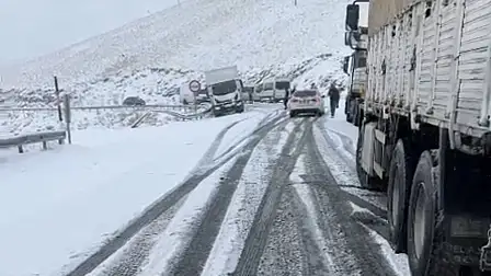 Yüksekova-Van kara yolunda etkili olan yoğun kar yağışından dolayı çok sayıda araç yolda mahsur kaldı.