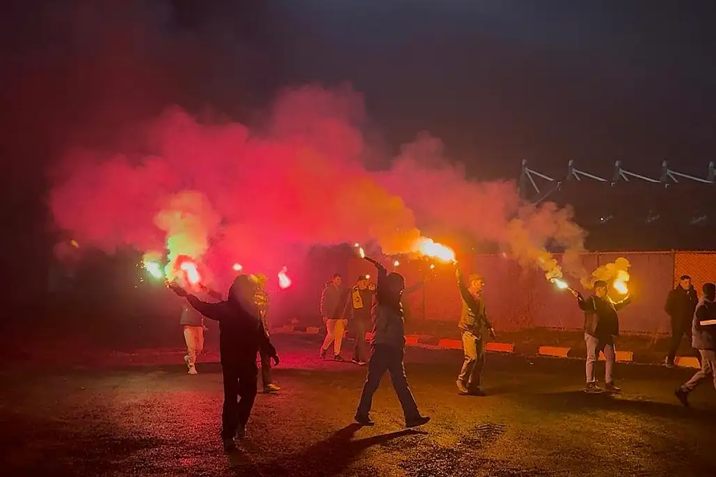 Zirve 04 taraftar grubu, deplasmandan dönen Ağrı 1970 Spor oyuncularını meşaleler ve tezahüratlarla karşıladı.