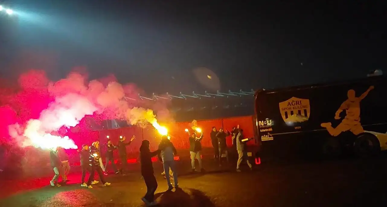 Zirve 04 taraftar grubu, deplasmandan dönen Ağrı 1970 Spor oyuncularını meşaleler ve tezahüratlarla karşıladı.